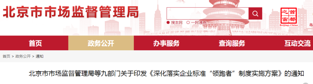 為落實(shí)《中共北京市委 北京市人民政府關(guān)于加快培育壯大新業(yè)態(tài)新模式促進(jìn)北京經(jīng)濟(jì)高質(zhì)量發(fā)展的若干意見(jiàn)》,按照《市場(chǎng)監(jiān)管總局等八部門(mén)關(guān)于實(shí)施企業(yè)標(biāo)準(zhǔn)“領(lǐng)跑者”制度的意見(jiàn)》要求,市市場(chǎng)監(jiān)管局等九部門(mén)制定了《深化落實(shí)企業(yè)標(biāo)準(zhǔn)“領(lǐng)跑者”制度實(shí)施方案》,經(jīng)市政府批準(zhǔn),現(xiàn)印發(fā)給你們。請(qǐng)認(rèn)真貫徹落實(shí),鼓勵(lì)企業(yè)創(chuàng)制先進(jìn)標(biāo)準(zhǔn),促進(jìn)新業(yè)態(tài)新模式發(fā)展壯大,以高標(biāo)準(zhǔn)推動(dòng)北京經(jīng)濟(jì)高質(zhì)量發(fā)展。