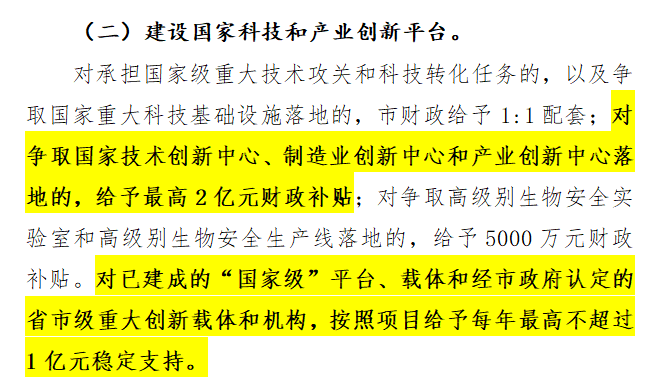 對承擔(dān)國家級重大技術(shù)攻關(guān)和科技轉(zhuǎn)化任務(wù),以及爭取國家重大科技基礎(chǔ)設(shè)施落地的給予財政補貼。