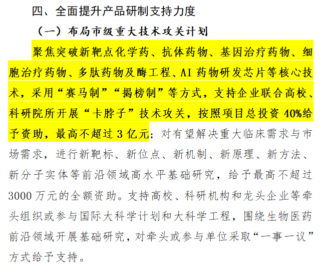 《措施》中重點提到,對基因治療藥物、細胞治療藥物等核心技術(shù),支持企業(yè)聯(lián)合高校、科研院所開展“卡脖子”技術(shù)攻關(guān),給予最高3億元的資助。