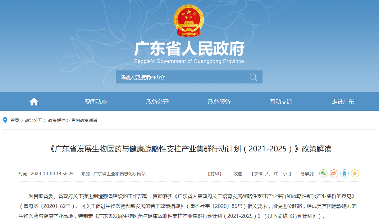 近日,廣東省科學(xué)技術(shù)廳、發(fā)展和改革委員會(huì)、工業(yè)和信息化廳、衛(wèi)生健康委員會(huì)、市場(chǎng)監(jiān)督管理局等五部門(mén)聯(lián)合發(fā)布《廣東省發(fā)展生物醫(yī)藥與健康戰(zhàn)略性支柱產(chǎn)業(yè)集群行動(dòng)計(jì)劃(2021-2025年)》。